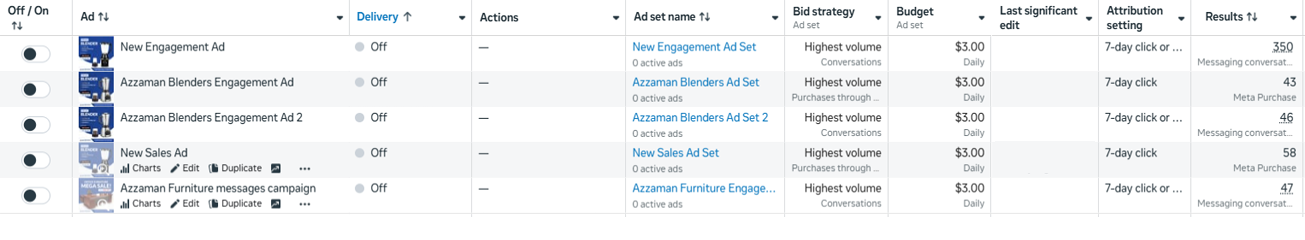 ✅ Category Segmentation: We didn’t lump everything together. We ran a dedicated “Blenders Ad Set” separate from the “Furniture Messages Campaign”. This allowed the algorithm to find specific buyers for each product type without confusion.