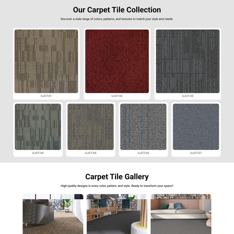 ✅ Inspiration-Led Hero Sections: Instead of generic stock photos, we used high-impact, full-width headers showing the finished transformation (e.g., “Transform Your Floors with Premium Carpet Tiles”). This immediately hooks the user by showing the end result, not just the raw material.